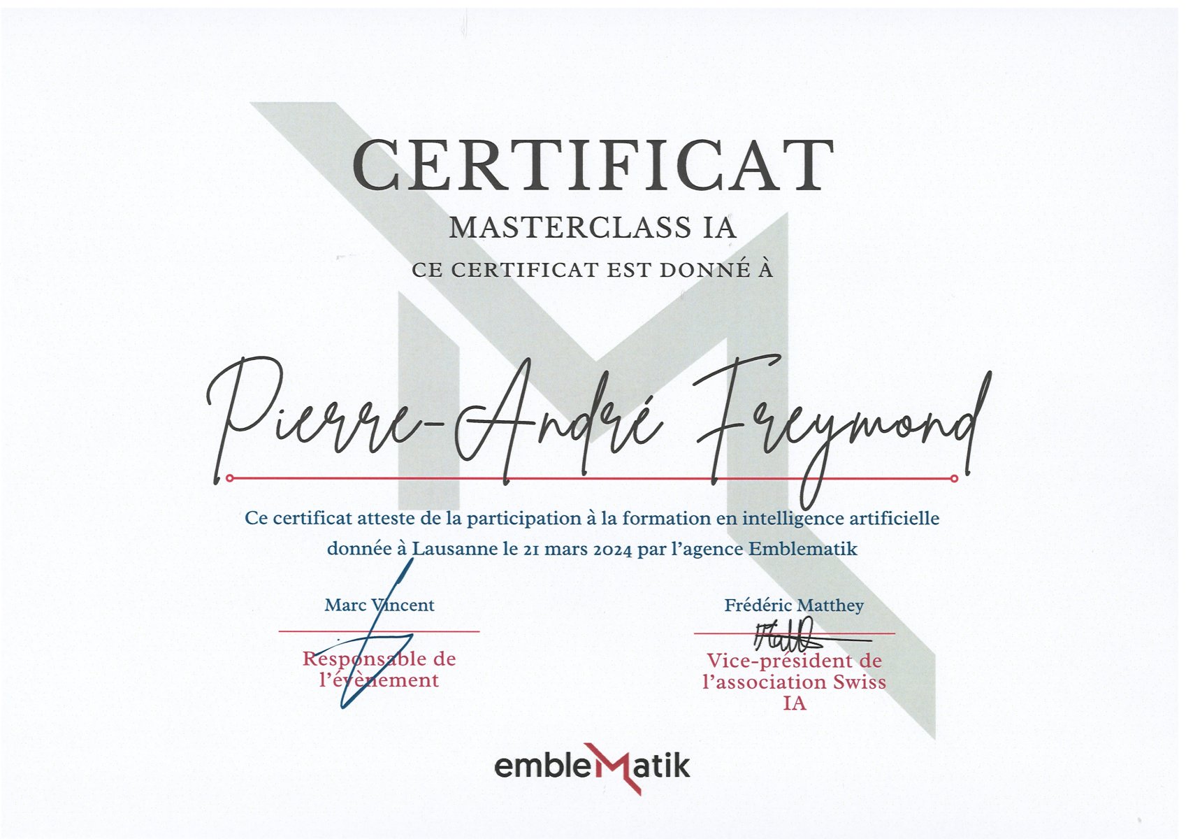 Pierre-André incarne la curiosité et la capacité d’adaptation nécessaires pour relever les défis de la transformation numérique. Son engagement et son regard éclairé enrichissent la mission d’AI Swiss.